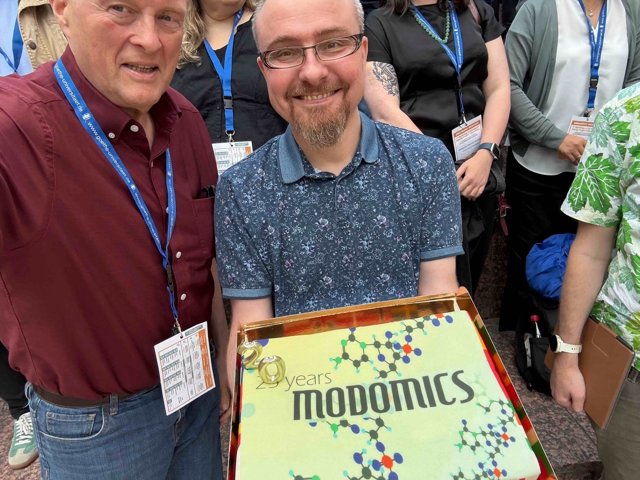 -08 August 2025: Pete and Michael attend the First International Human RNome Project Consortium Workshop in Frankfurt and celebrate the 20th anniversary of Modomics with founder Janusz Bujnicki (also Janusz’s 50th birthday!). The HRP workshop was organized by Viv Cheung from Brown University and Stefanie Kaiser at Goethe University (former Dedon Lab postdoc) and led to a major project to create a pilot map of every RNA modification in every form of RNA in a human cell line.
